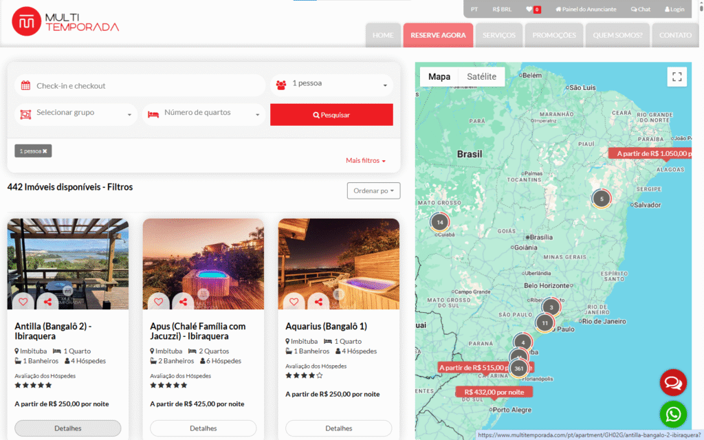 - Busca Personalizada: Acesse o site e filtre as opções por localização, número de hóspedes, datas e preferências específicas