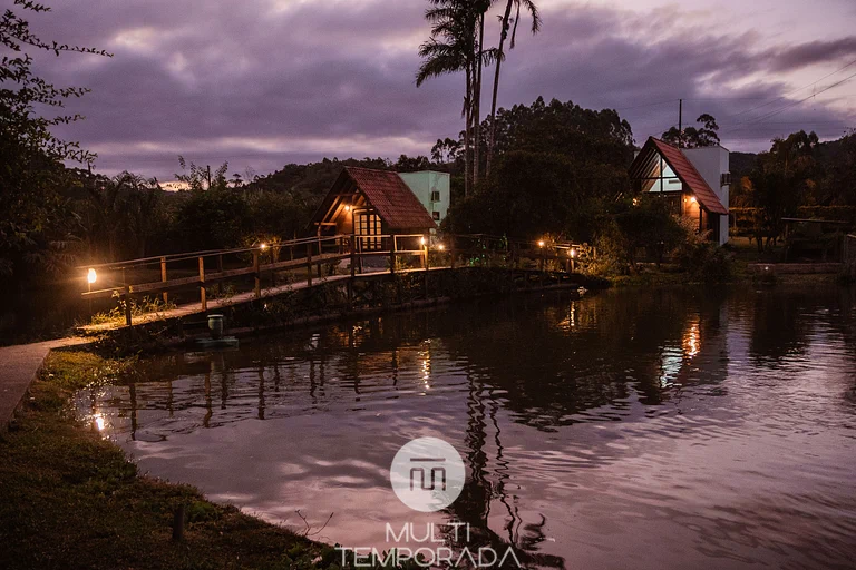 Complexo charmoso com lago privativo, cachoeira e trilhas exclusivas para exploração. O Chalet Do Lago com Banheira e o Chalet Lavanda incluem banheira de hidromassagem, enquanto a Casa Rosalina e o Chalet Joaquina ampliam as opções de hospedagem. O café da manhã especial e os amplos jardins completam a experiência romântica longe dos blocos de rua.